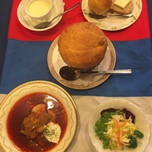 ロシア料理を初めて食べました。ボルシチも、シュクメルリもとっても美味しかった。子供も連れて行きましたが、小学生でも美味しく楽しめました。